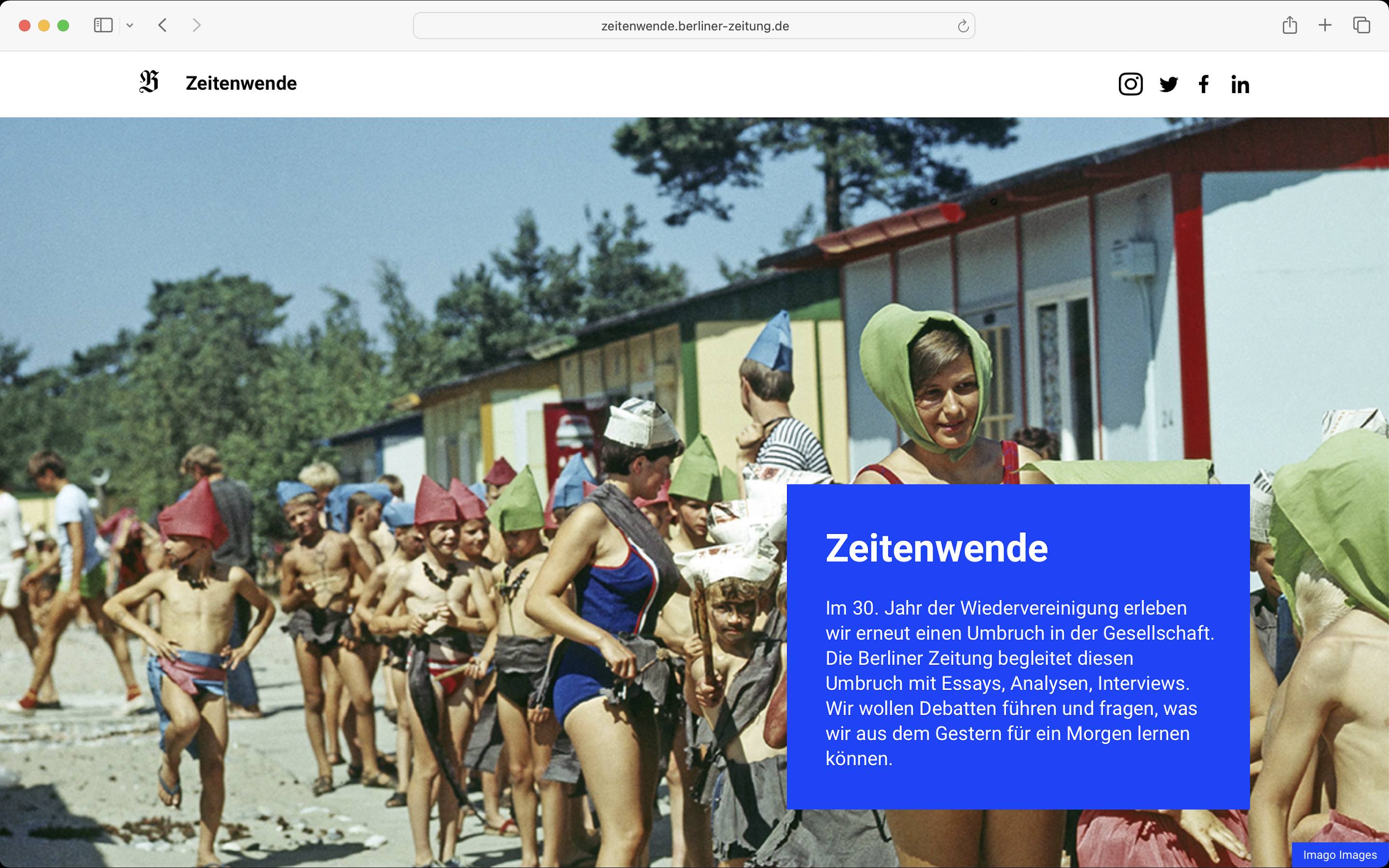 Die Berliner Zeitung widmete dem 30jährigen Jubiläum der Wiedervereinigung die Sonderausgabe "Zeitenwende", welche neben einem Print-Magazin auch von einer eigenen Landing Page begleitet wurde. Von der Hauptseite getrennt, sollte diese alle relevanten Inhalte aufbereiten und in der gerade erst neu entwickelten Corporate Identity der Tageszeitung anbieten.